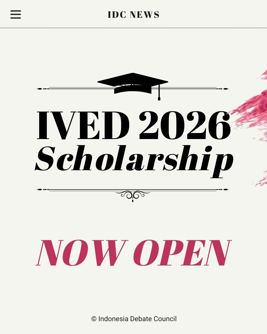 In accordance with Article 37 of the Constitution of the Indonesian Debating Council, IVED 2026 is officially opening scholarship applications for institutions and adjudicators facing financial barriers.