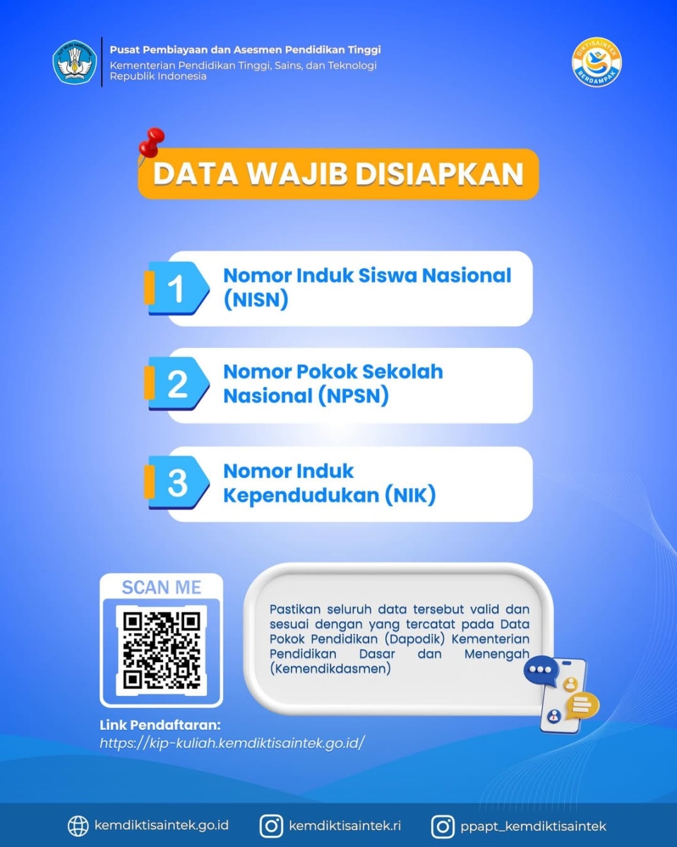 Untuk kamu yang bermimpi melanjutkan pendidikan tinggi, inilah kesempatan emas untuk mempersiapkan langkahmu menuju masa depan yang gemilang. Segera daftarkan dirimu dan pastikan semua data yang dibutuhkan sudah siap.Siapkan diri untuk melangkah lebih jauh dalam dunia pendidikan! Jangan lewatkan kesempatan ini!